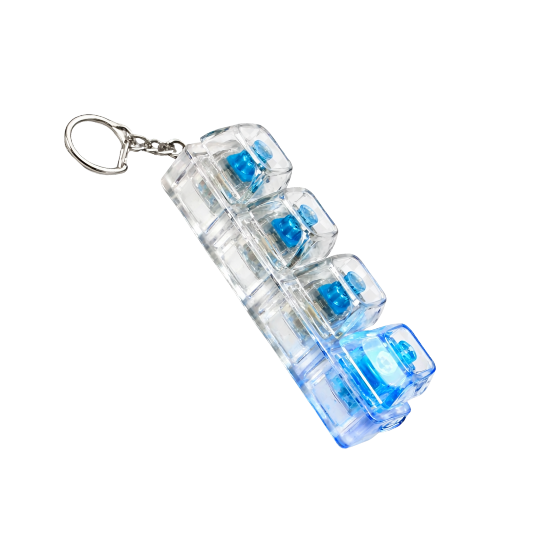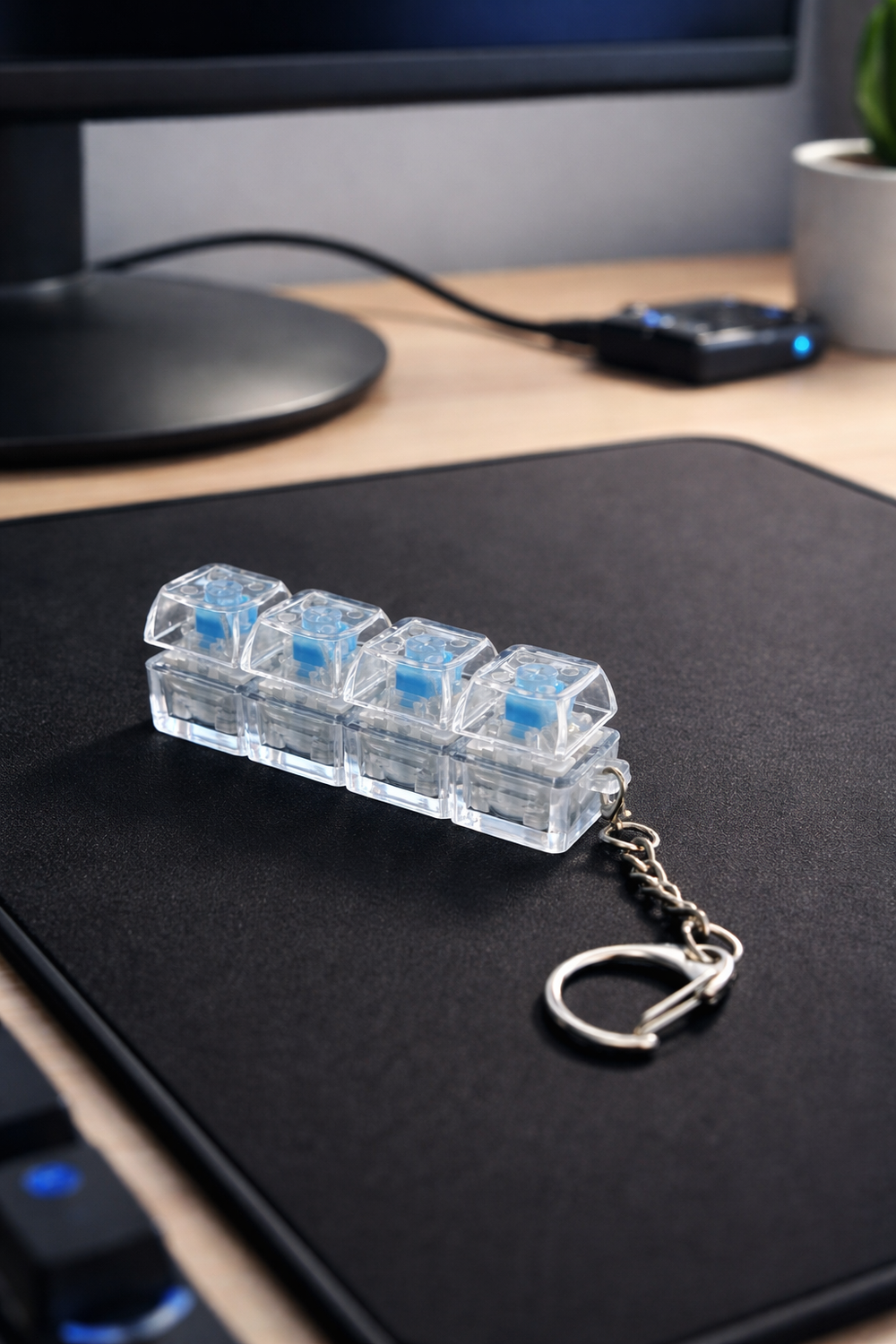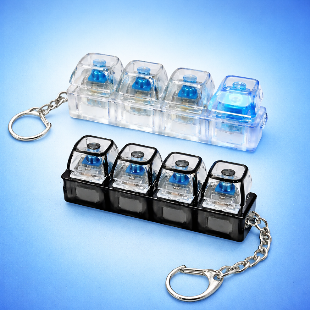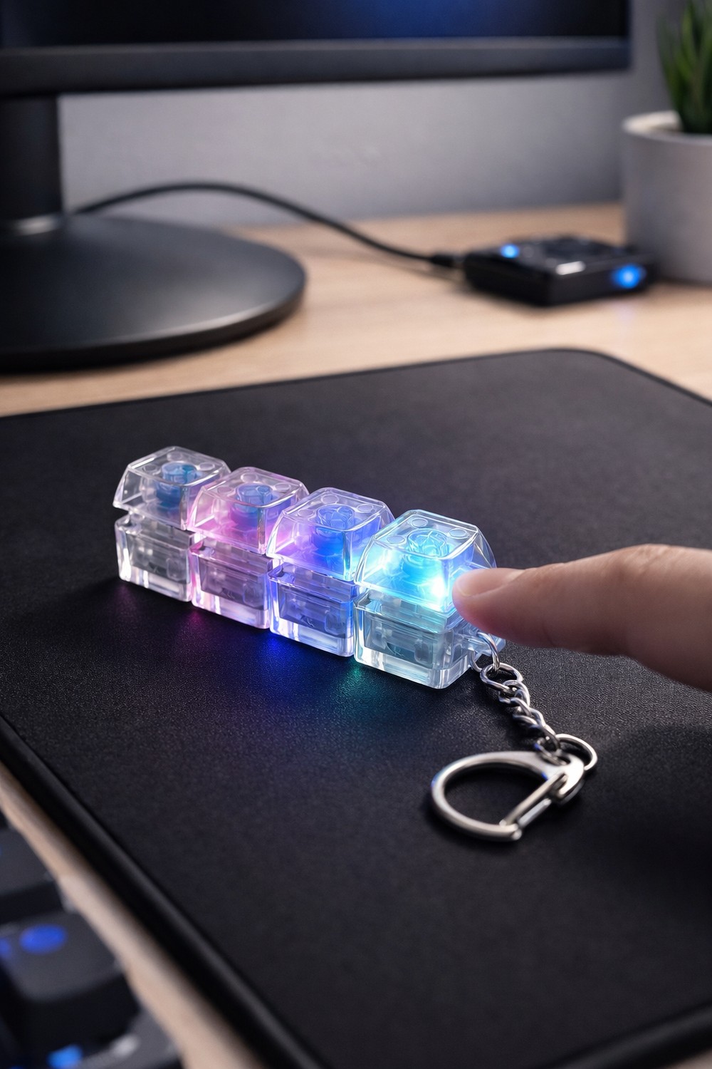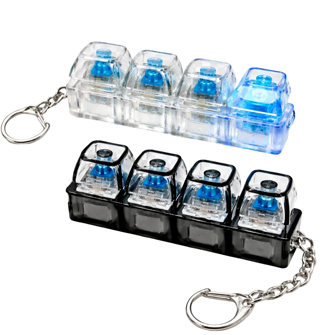 ClickCalm está diseñado para liberar estrés y mantener las manos ocupadas mediante pulsaciones mecánicas reales y luz RGB reactiva.